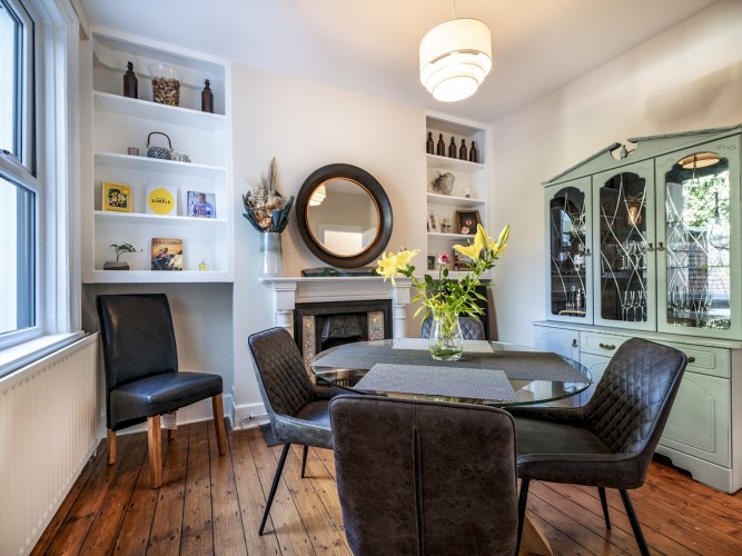 Edwardian townhouse, freshly renovated throughout, bright and airy decor. Reclining living room furniture. Freestanding bath in bathroom. Many original features retained. Fireplaces (ornamental only) Close proximity to Belmont Road, Ballyhackamore, Strand Cinema, City Centre etc.
