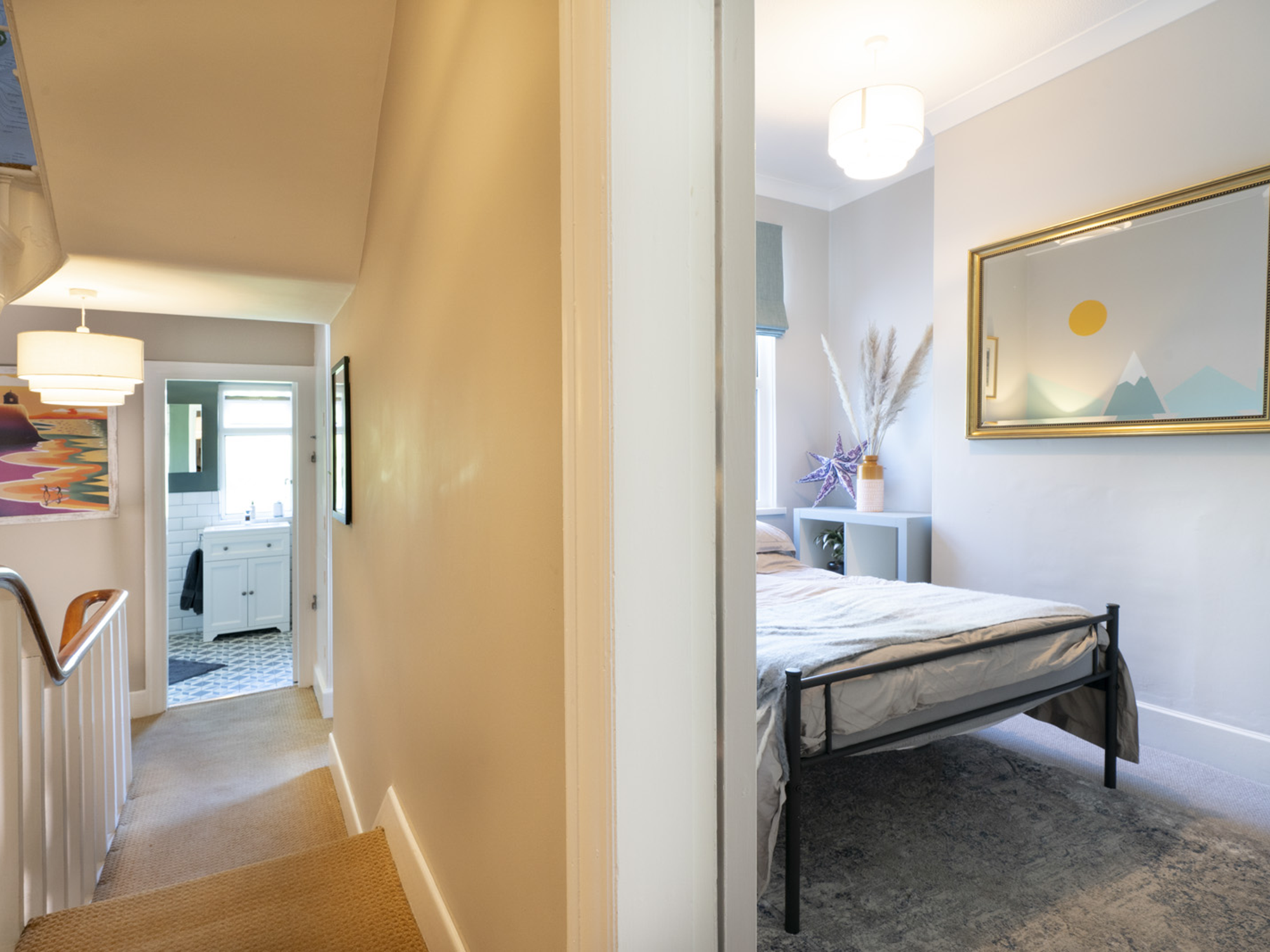 On the second floor you will find two bedrooms (1 super king and 1 double) as well as a very calming bathroom with full bath to soak in after a long day sightseeing.
